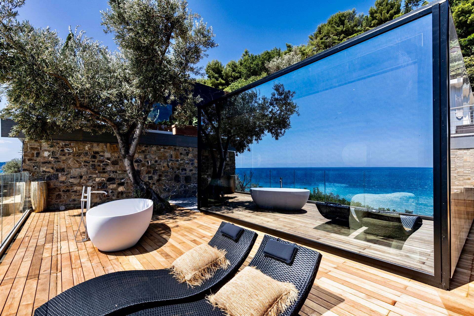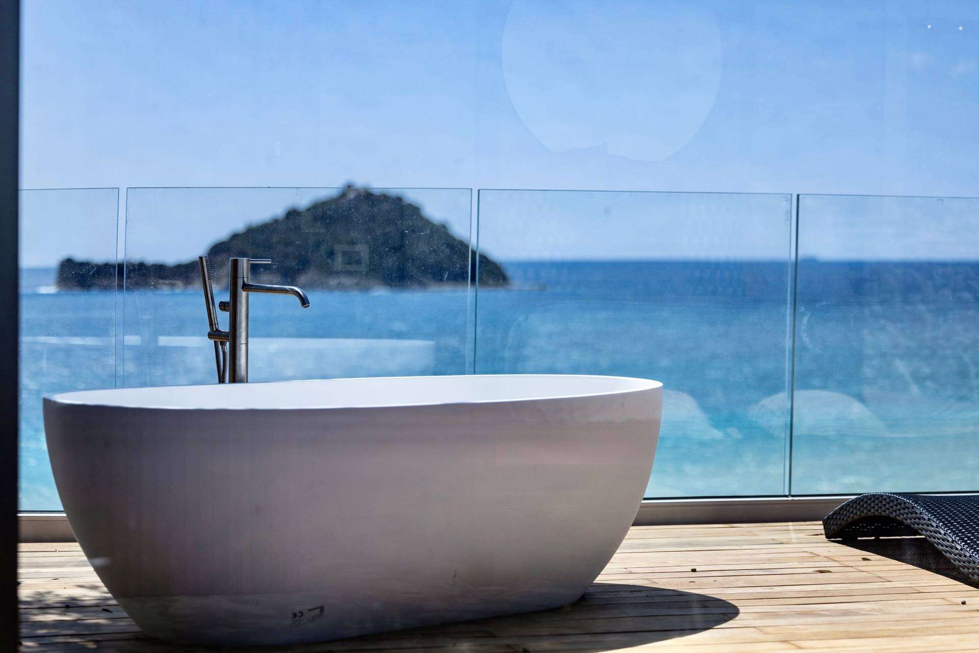 La vasca da bagno trasparente esterna di Antonio Lupi vi sorprenderà per il suo design, gli interni curatissimi vi coccoleranno durante tutto il vostro soggiorno.